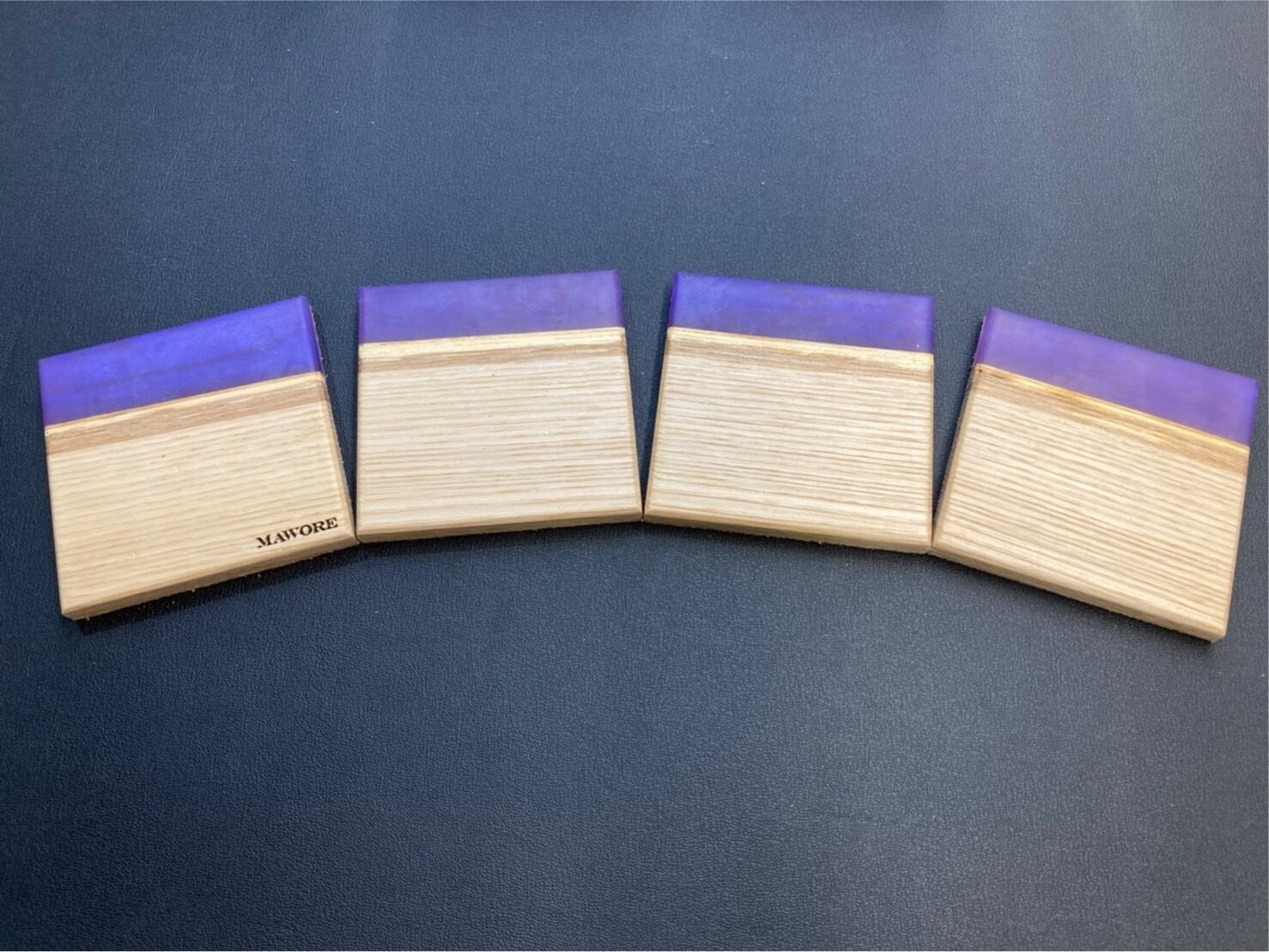 ウッドレジン コースター4枚セット(パープル:栗の木)mawore-c0048